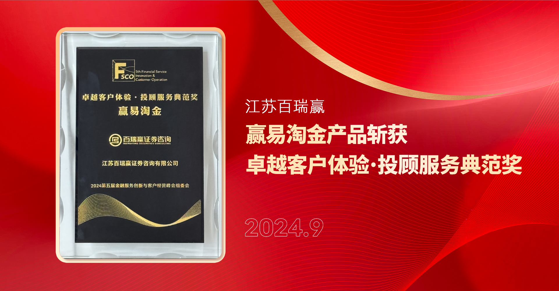 江蘇百瑞贏證券咨詢有限公司原名“上海新資源證券咨詢有限公司”,成立于1999年11月,同年獲得中國證券監(jiān)督管理委員會(huì)頒發(fā)的首批證券投資咨詢執(zhí)業(yè)資格證書。成立以來,百瑞贏始終以客戶為中心,致力于推動(dòng)證券咨詢行業(yè)發(fā)展,不斷創(chuàng)新產(chǎn)品與服務(wù),為用戶提供專業(yè)、高效、智能的證券投資解決方案。